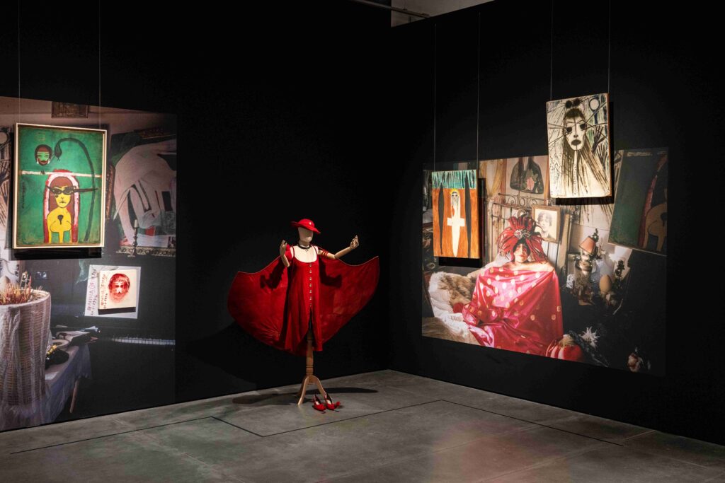 “Semiha Berksoy: Tüm Renklerin Aryası”, izleyicileri sanatçının sahne ile harmanlanmış yaşamına adım adım davet eden bir sergi kurgusu sunuyor. Serginin odak noktası olan Kırmızı Oda, Berksoy’un opera sahnesinde canlandırdığı Tosca, Salome ve Fidelio gibi figürlere odaklanıyor; bu dramatik karakterler, sanatçının bedeni ve kimliği ile özdeşleşirken anıtsal anlatılara dönüşmekte. Opera kayıtları, belgeseller ve arşiv malzemeleriyle desteklenen bu merkezden sergi geneline yayılan geçişken yapı, izleyicilerin resimler arasında dolaşırken tekrar sahneye dönmelerini sağlıyor.